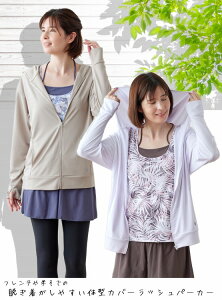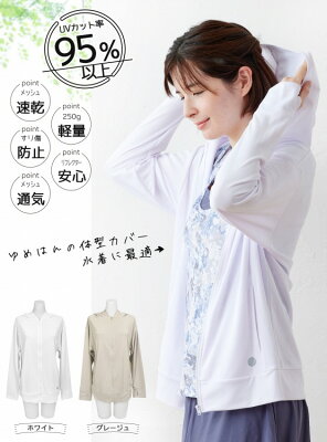 [GW期間中は全品ポイント5倍&2品で5%OFFクーポン] UVカット率95%以上 体型カバー ラッシュパーカー ホワイト グレージュ 水陸両用 水着 ラッシュガード 体型隠し 大きいサイズ 紫外線カット UPF 2s10