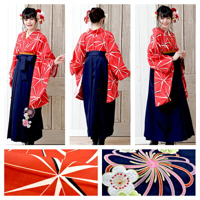 【レンタル】 卒業式 袴 女性 大学生 フルセット レディース 大人 小学生 短大生 SS S M L LL 二尺袖 大正ロマン レトロ モダン 正統派 古典 朱赤 赤 紺 ネイビー 麻の葉柄 刺繍入り 無地 安い 小さい 大きい 予約 小振袖 ジュニア 急ぎ 早く ギリギリ 往復送料無料