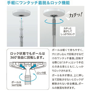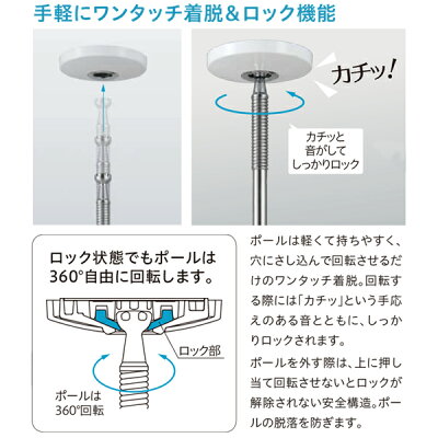 ■手軽にワンタッチ着脱&ロック機能ポールは軽くて持ちやすく、穴にさし込んで回転させるだけのワンタッチ着脱。