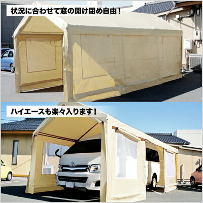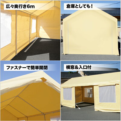 ガレージテント 3×6m 車庫テント サイドパネル 窓付き メッシュ イベント キャンプ アウトドア タープテント CANOPY スチールフレーム カーポート 車庫 6m×3m ###車庫テント0106◇###