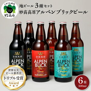 【ふるさと納税】新潟県 妙高高原アルペンブリックビール クラフトビール 世界五大ビール審査会 で トリプル受賞! 3種 セット 500ml × 6本 地ビール 天然水 家飲み ギフト 飲み比べ 定番 お取り寄せ 酒 ピルスナー ダークラガー ヴァイツェン