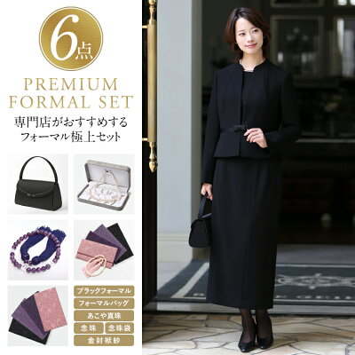 喪服 正喪服 レディース ブラックフォーマル 礼服 6点セット ロング丈 大きいサイズ 黒 スーツ フォーマル スカート 小物 フォーマルバッグ バッグ あこや真珠 真珠 パール ネックレス イヤリング ピアス 数珠 念珠袋 袱紗 葬儀 30代 40代 50代 60代 NGR-2128-ST6 送料無料