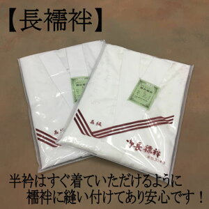 長襦袢はお家でお手入れできるポリエステル製で、すぐにお召しになって頂けるように半衿は襦袢に縫い付けてあります。
