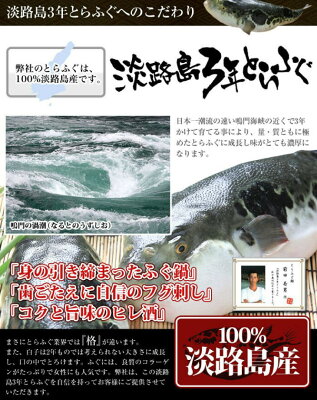たっぷりの愛情で育てられた『淡路島3年とらふぐ』 鳴門海峡が近いので潮の流れが速く、運動量が多い分、身が引き締まってうま味がたっぷり。