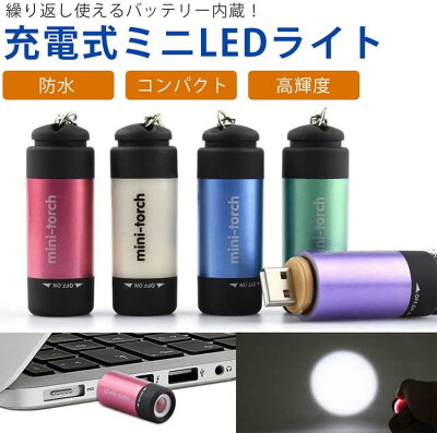 USB充電式 ミニライト 防水 コンパクト 高輝度 キーホルダー キーチェーン カラビナ 軽量 LED アウトドア 散歩 PR-MINI-TORCH【メール便対応】