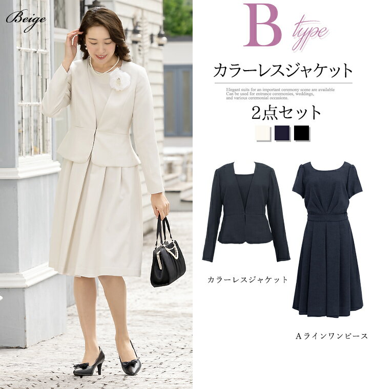 2点セットセレモニースーツについて選べるジャケットとAラインワンピースのセットアップスーツです。