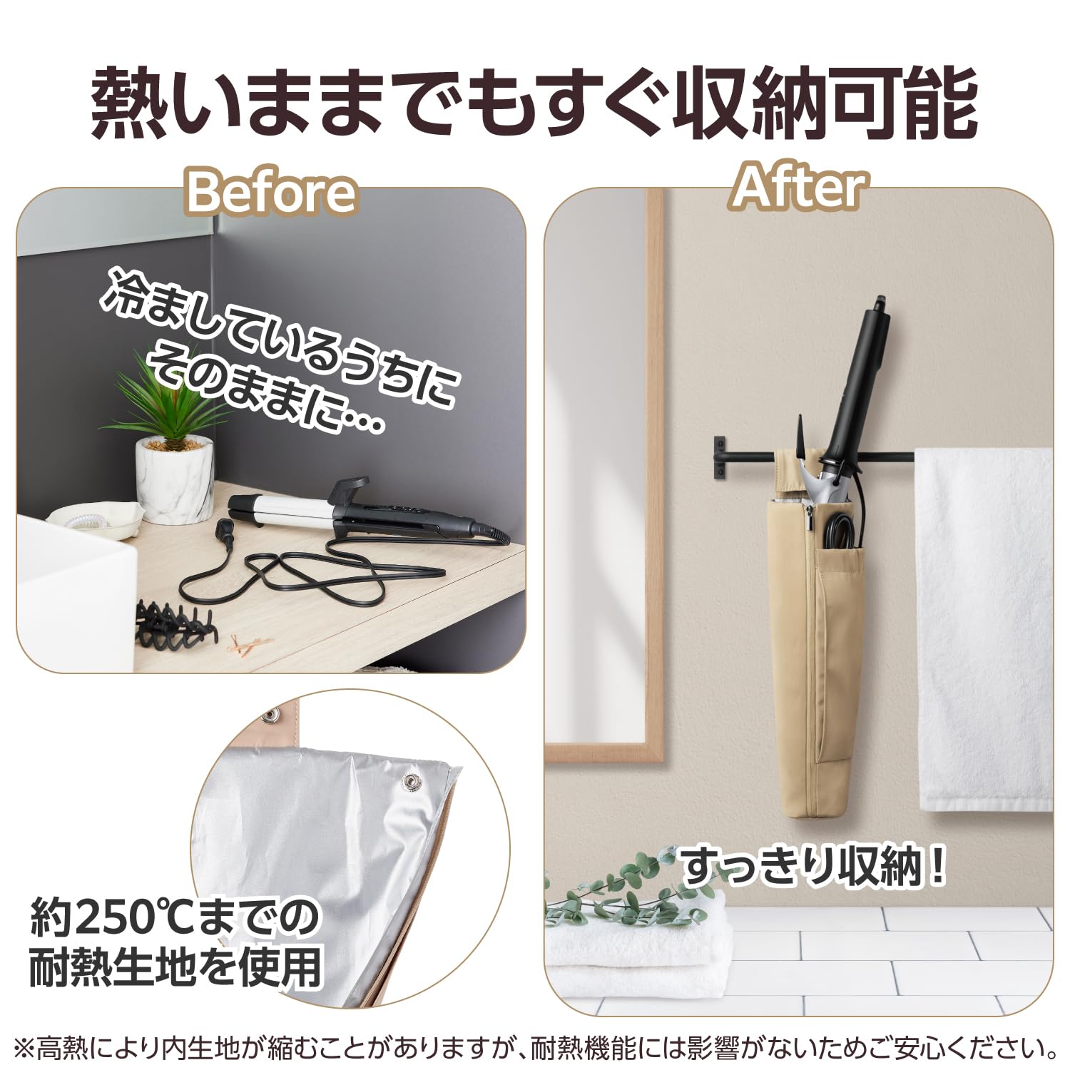 エレコム ヘアアイロンホルダー 耐熱 250度 そのまましまえる 吊り下げ 一時置き 2way 側面ファスナー コードポケット 2タイプストラップ 旅行 断熱素材 ベージュ BA-HIHLFBE